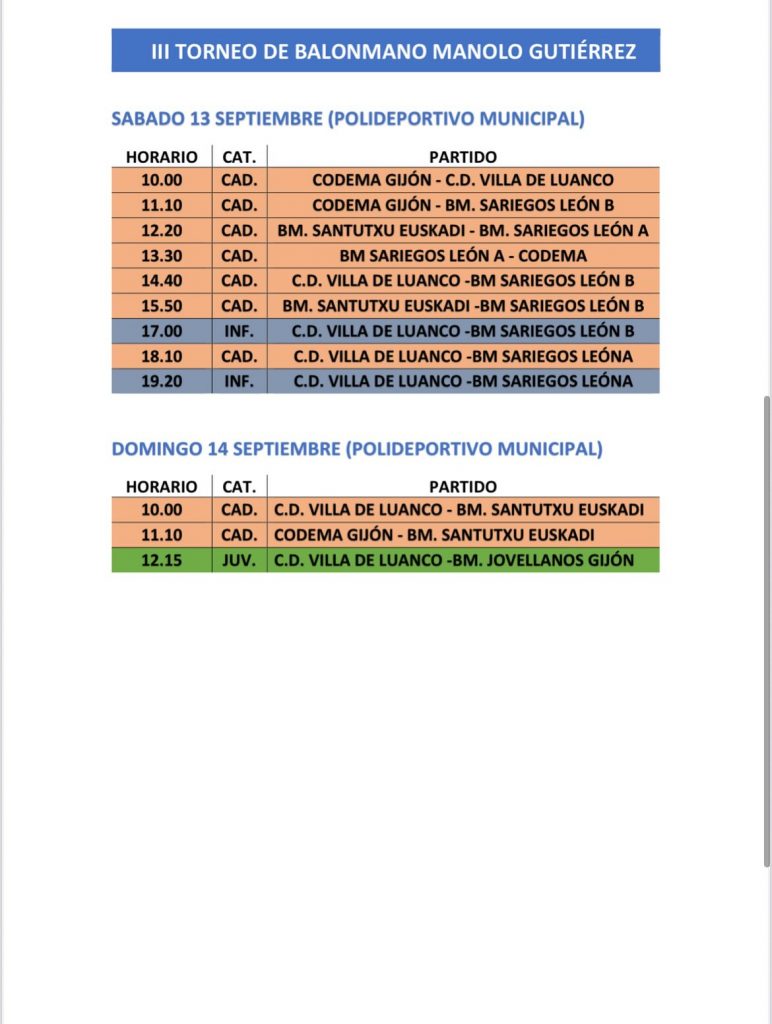 El próximo fin de semana se celebra el Torneo de Balonmano Manolo Gutiérrez, en categorías infantil juvenil y cadete. Organizado por el Villa de Luanco.