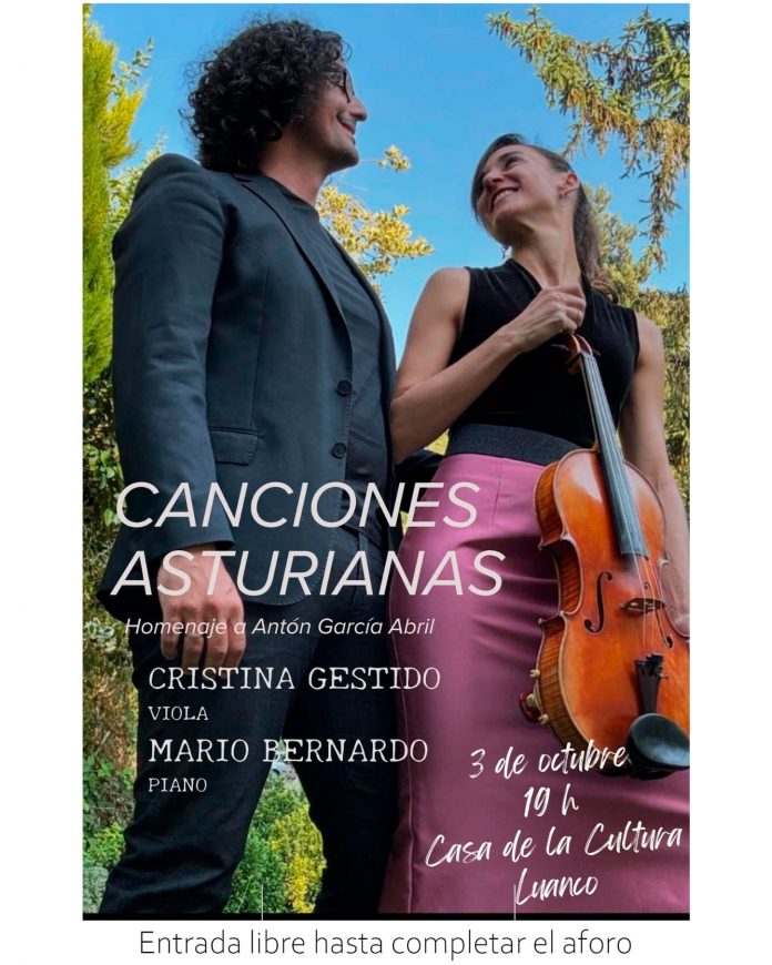 Este proyecto, impulsado desde la Concejalía de Cultura, propone un viaje musical que transforma la canción popular asturiana en formato de música de cámara. Las piezas, compuestas por Antón García Abril a partir de melodías tradicionales, se interpretan en una formación clásica de viola y piano, con letras del poeta León Delestal.